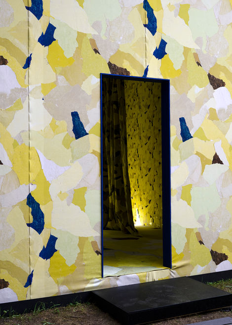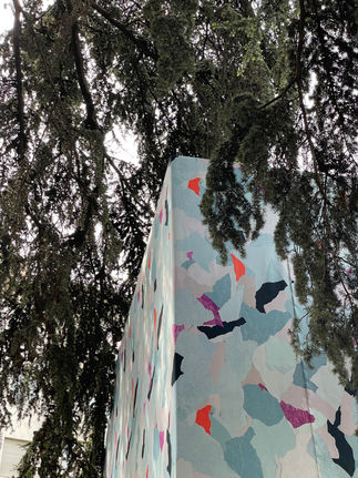 This installation by artist Naoki Kawano explores the fusion of touch and vision, conceptualizing the wallpapers, rugs, and carpets that envelop our living spaces as "skins." Inspired by patterns found in pressed aluminum foil, the work draws from Kawano's "folia" series.